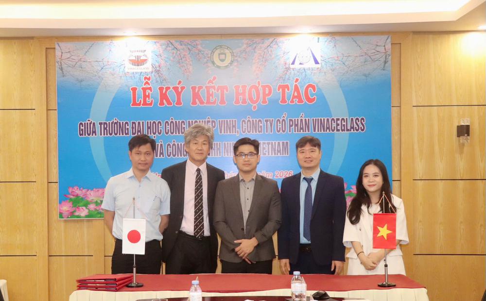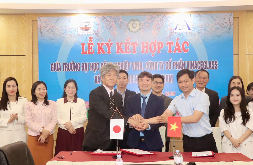 Ngày 05/03/2026, tại Trường Đại học Công nghiệp Vinh đã diễn ra lễ ký kết Biên bản ghi nhớ hợp tác giữa Trường Đại học Công nghiệp Vinh, Công ty Cổ phần Vinaceglass và Công ty TNHH Nippou Vietnam. Sự kiện đánh dấu bước phát triển mới trong mối quan hệ hợp tác giữa cơ sở đào tạo và doanh nghiệp, hướng tới mục tiêu gắn kết chặt chẽ giữa đào tạo, nghiên cứu khoa học và hoạt động sản xuất kinh doanh.