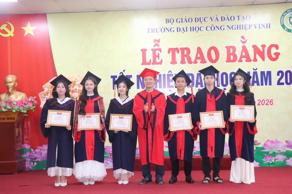 Sáng ngày 14/3/2026, Trường Đại học Công nghiệp Vinh đã long trọng tổ chức Lễ trao bằng tốt nghiệp đợt 1 năm 2026 dành cho sinh viên hệ chính quy và liên thông đã hoàn thành chương trình đào tạo tại Nhà trường. Buổi lễ diễn ra trong không khí trang trọng, ấm áp với sự tham dự của Ban Giám hiệu, lãnh đạo các đơn vị, giảng viên cùng đông đảo tân cử nhân và gia đình, người thân.