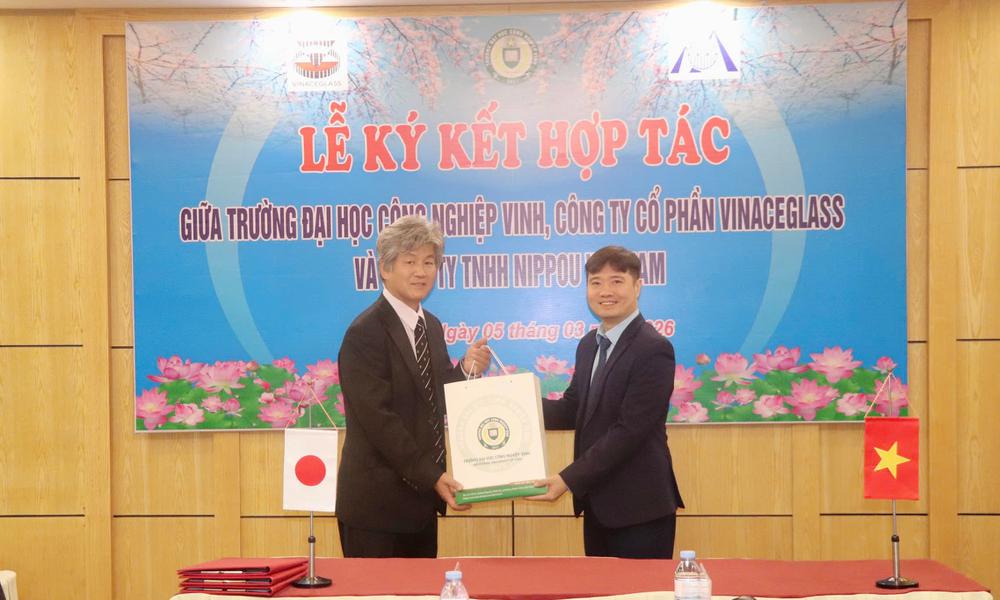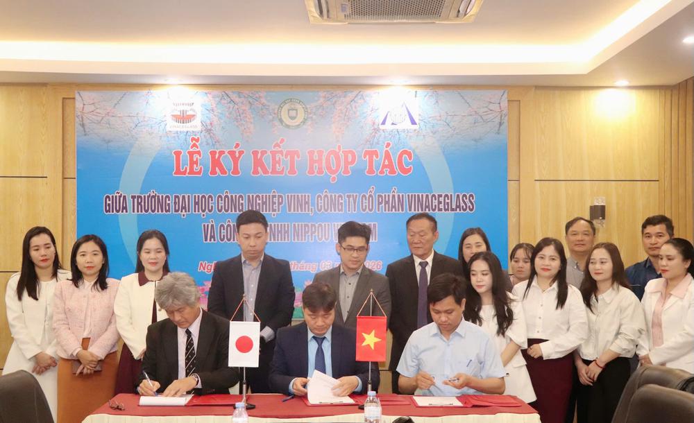 Ngày 05/03/2026, tại Trường Đại học Công nghiệp Vinh đã diễn ra lễ ký kết Biên bản ghi nhớ hợp tác giữa Trường Đại học Công nghiệp Vinh, Công ty Cổ phần Vinaceglass và Công ty TNHH Nippou Vietnam. Sự kiện đánh dấu bước phát triển mới trong mối quan hệ hợp tác giữa cơ sở đào tạo và doanh nghiệp, hướng tới mục tiêu gắn kết chặt chẽ giữa đào tạo, nghiên cứu khoa học và hoạt động sản xuất kinh doanh.