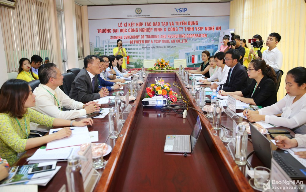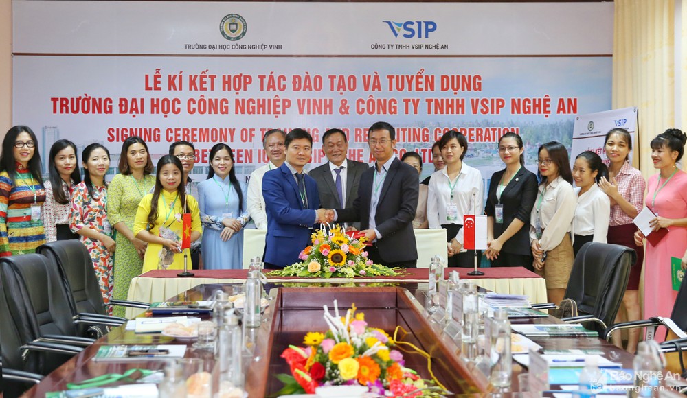 Phát huy những thành tựu đã đạt được, ngày 20/7, Trường Đại học Công nghiệp Vinh và Công ty TNHH VSIP Nghệ An chính thức ký kết biên bản ghi nhớ về việc Hợp tác giáo dục, đào tạo và tuyển dụng.
