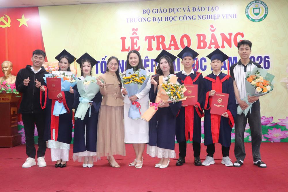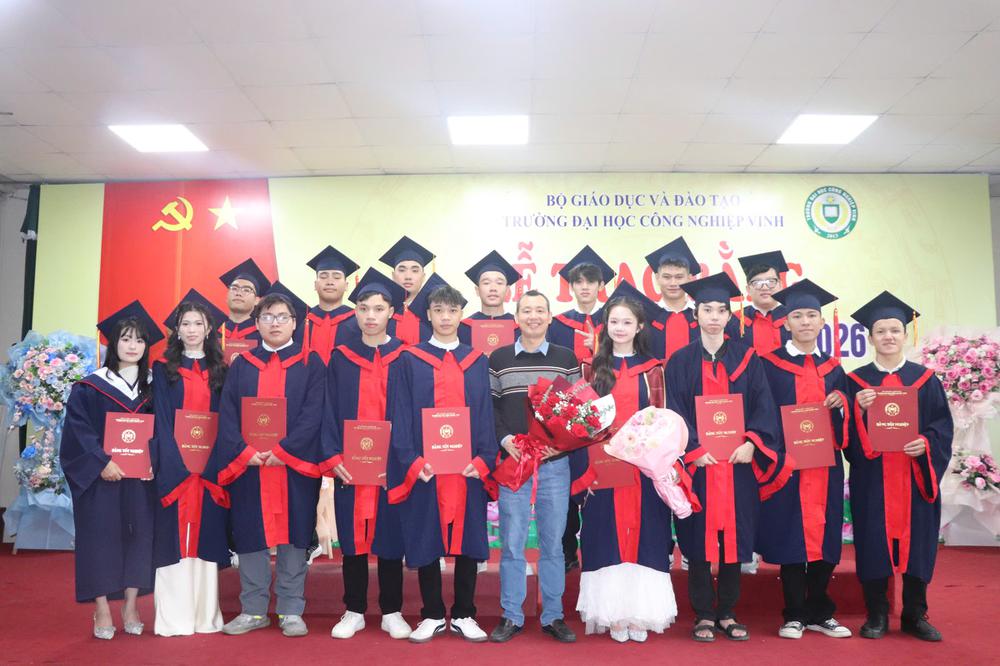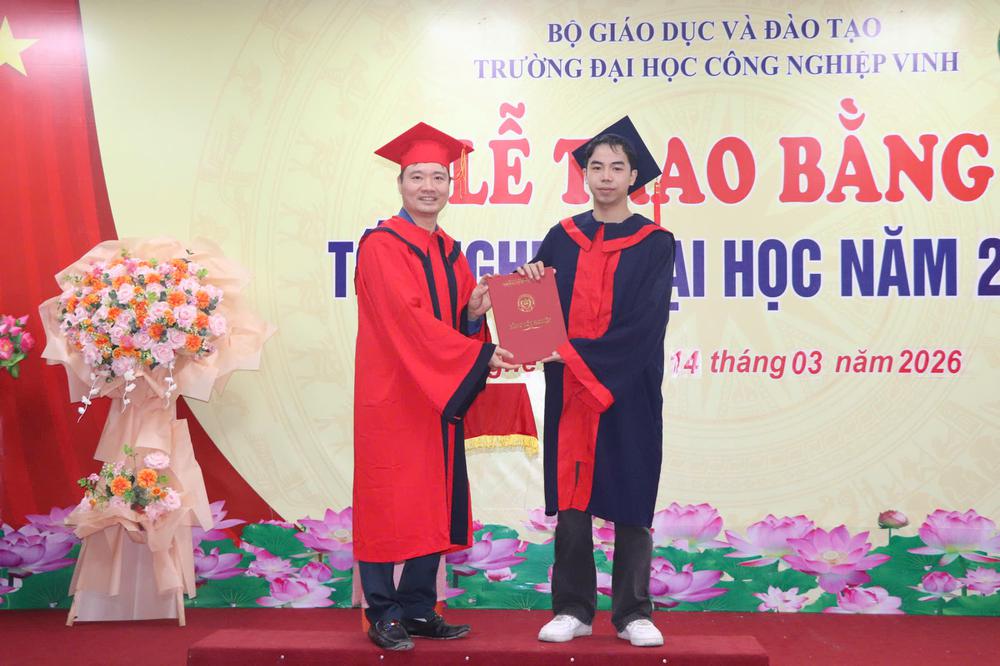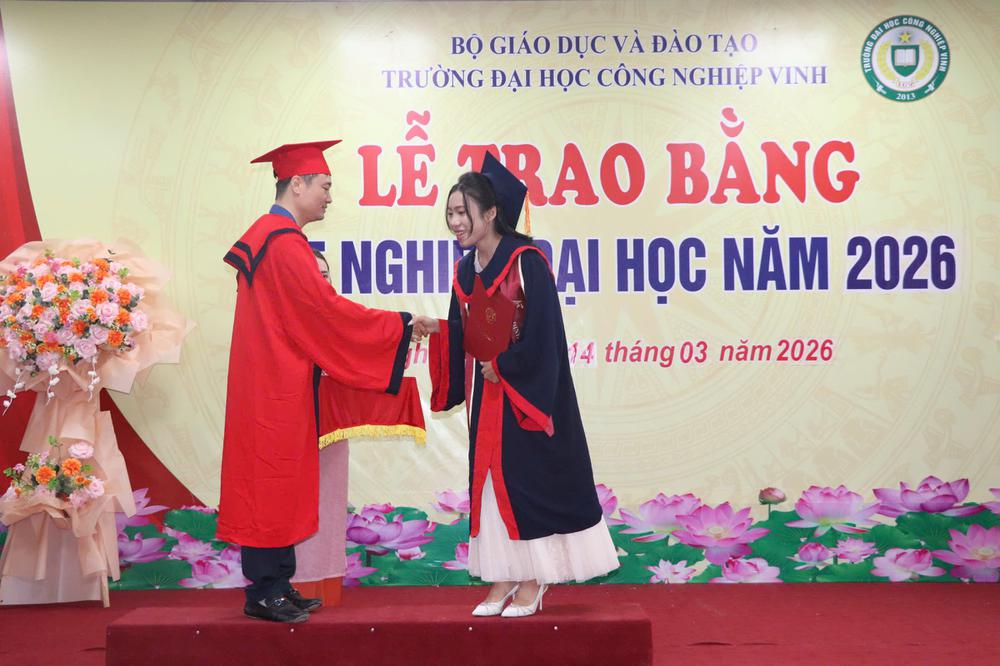 Sáng ngày 14/3/2026, Trường Đại học Công nghiệp Vinh đã long trọng tổ chức Lễ trao bằng tốt nghiệp đợt 1 năm 2026 dành cho sinh viên hệ chính quy và liên thông đã hoàn thành chương trình đào tạo tại Nhà trường. Buổi lễ diễn ra trong không khí trang trọng, ấm áp với sự tham dự của Ban Giám hiệu, lãnh đạo các đơn vị, giảng viên cùng đông đảo tân cử nhân và gia đình, người thân.