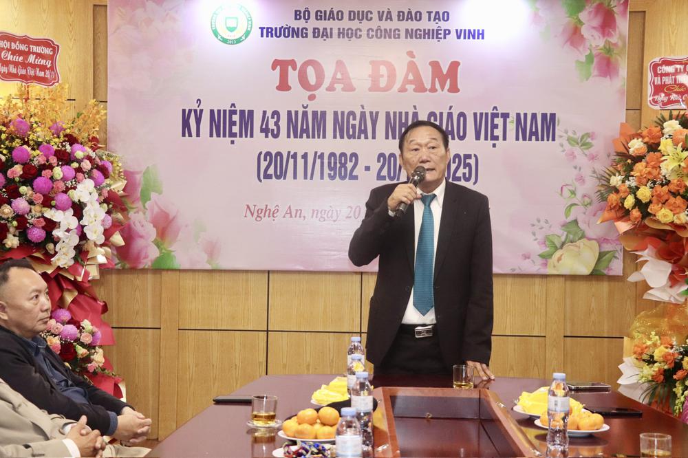 Tiếp đó, đại diện Hội đồng Trường, ông Trần Lê Dũng - Chủ tịch HĐT đã phát biểu chúc mừng 20/11, khẳng định sự đồng hành và cam kết tiếp tục hỗ trợ Nhà trường trong công tác đào tạo, nghiên cứu khoa học và phát triển đội ngũ giảng viên. Những chia sẻ đầy tình cảm và trân trọng đã tạo nên dấu ấn đẹp trong không khí tri ân của buổi tọa đàm.