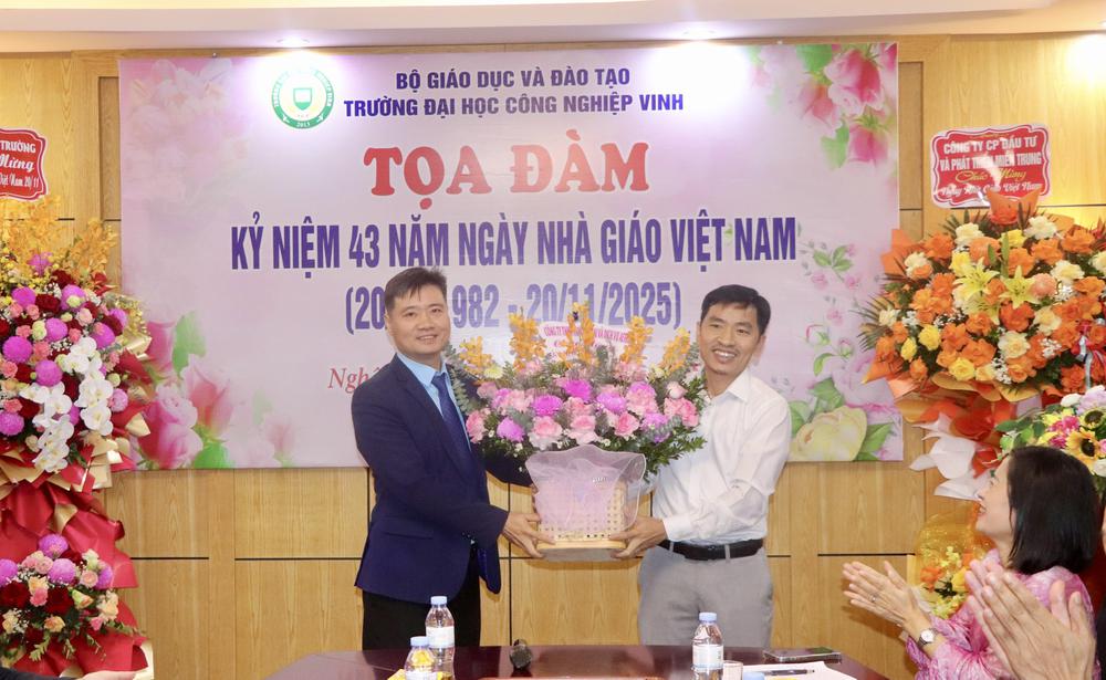 Hòa trong không khí tri ân và tôn vinh những người làm công tác giáo dục trên cả nước, sáng ngày 20/11/2025, Trường Đại học Công nghiệp Vinh long trọng tổ chức Tọa đàm chào mừng Ngày Nhà giáo Việt Nam 20/11 tại Phòng Khánh tiết Nhà trường. Đây là hoạt động thường niên giàu ý nghĩa nhằm tôn vinh đội ngũ nhà giáo và khơi dậy niềm tự hào nghề nghiệp trong mỗi cán bộ, giảng viên.
